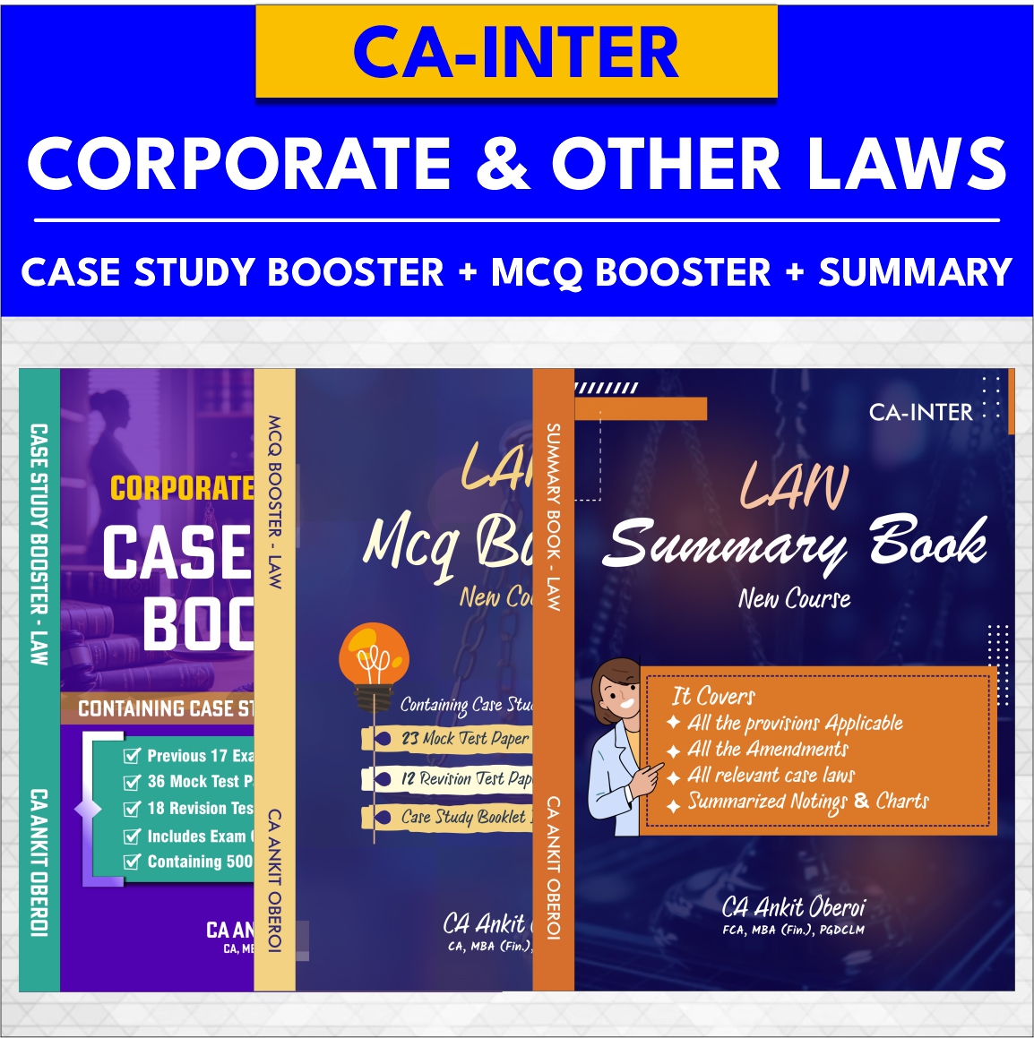 LAW - CASE STUDY BOOSTER + MCQ BOOSTER + SUMMARY BOOK - CA INTER COLOURED